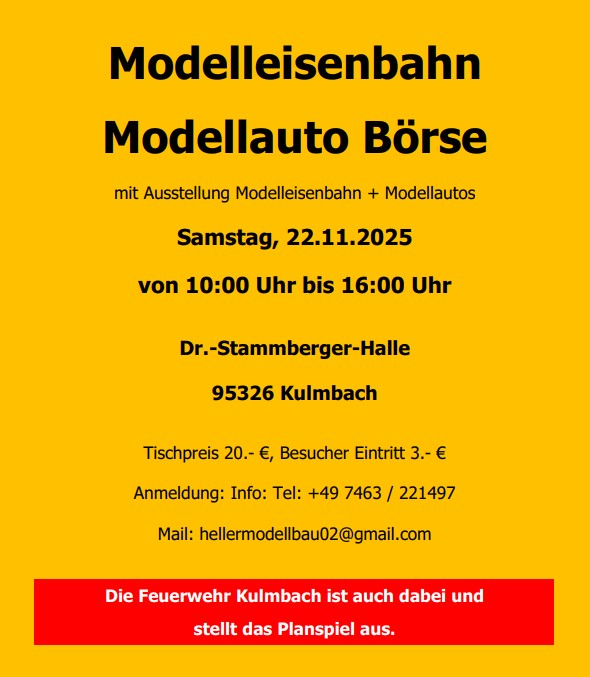 Wir stellen unser Planspiel bei der Modellbahnbörse am 22.11.2025 in der Dr.-Stammberger-Halle in Kulmbach aus.